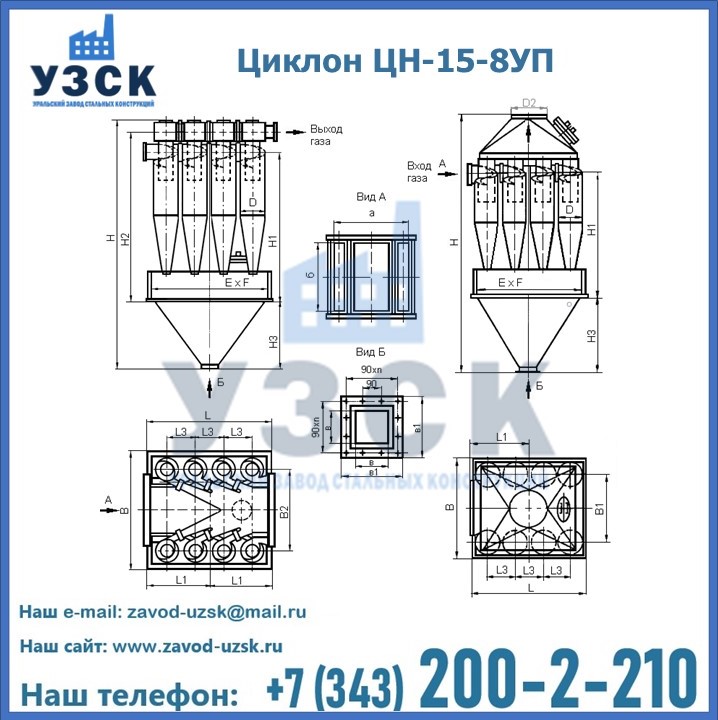 Завод «УЗСК» в Костанае предлагает большой выбор циклонов ЦН-15-500×8УП и прочих устройств, полностью укомплектованных и готовых к эксплуатации. Мы гарантируем соответствие оборудования всем требованиям ГОСТ и ТУ, износостойкость и высокую производительность предлагаемого оборудования. Уральский Завод Стальных Конструкций изготавливает и продает надежное, эффективное и производительное оборудование, имеющее длительную гарантию и большой эксплуатационный ресурс. Если требуется изготовить циклон нестандартных размеров, то такой вариант выполнения заказа тоже предусмотрен, так как предприятие имеет собственные производственные площади и надежных поставщиков. На все поставляемое или производимое оборудование имеются чертежи и прочая техническая документация. Заказать и купить циклоны или прочее оборудование высокого качества и по доступной цене можно через наш сайт или по указанному в разделе «Контакты» телефону.