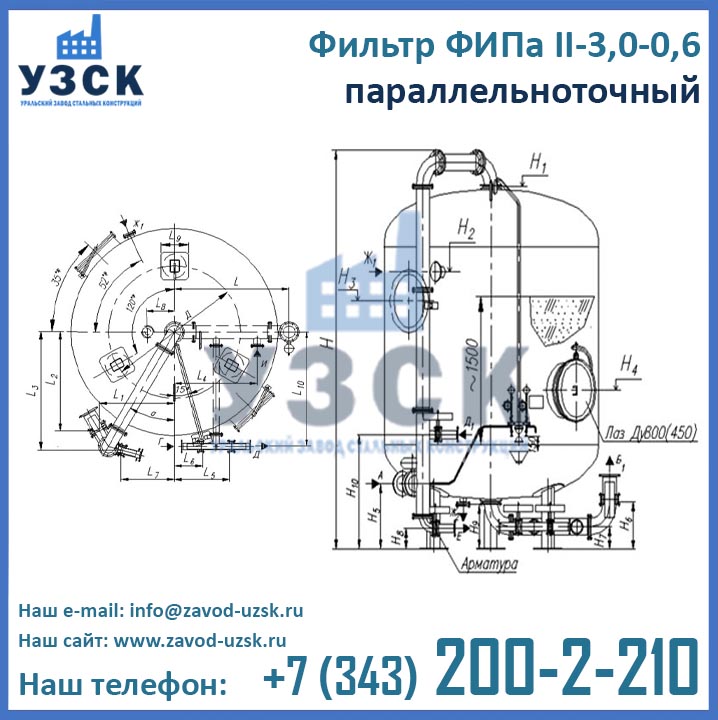 Актуальные цены на ФИПаII-3,0-0,6 в Костанае Вы можете уточнить в отделе продаж Уральского Завода Стальных Конструкций (производитель ионитных фильтров), для этого заполните форму заказа внизу страницы.