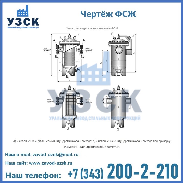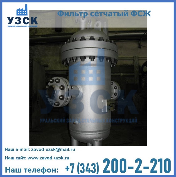 Очистку перекачиваемых жидкостей на предприятиях нефтяной, пищевой, горнорудной, фармацевтической и других отраслей промышленности эффективно выполнять с помощью жидкостного сетчатого фильтра — емкостное оборудование цилиндрической формы со съемной крышкой и элементом фильтрации внутри. Оснащенные им всасывающие линии насосных станций и установок защищены от проникновения твердых частиц в функциональные узлы гидравлической системы. Оборудование служит для перекачивания токсичных, агрессивных и иных эмульсий, суспензий, жидкостей. Купить фильтр сетчатый жидкостный ФСЖ в Костанае с гарантией производителя предлагает «Уральский завод стальных конструкций». Мы выполняем проектирование и изготовление ФСЖ по индивидуальным требованиям (климатическая зона, транспортируемая жидкость).