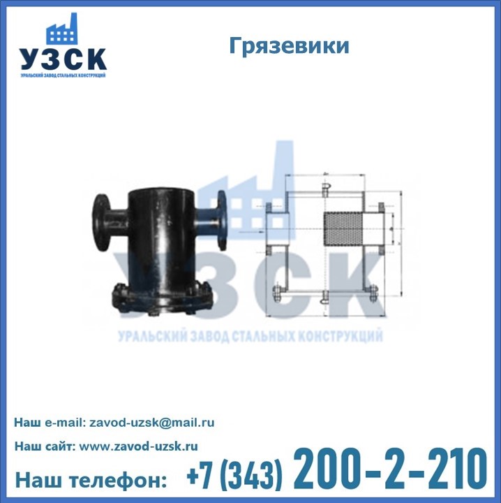 Уральский Завод Стальных Конструкций занимается производством и реализацией грязевиков в городе Костанай, в наличии устройства горизонтального и вертикального типа, соответствующие всем требованиям и стандартам, в том числе условиям «Правил устройства и безопасной эксплуатации».