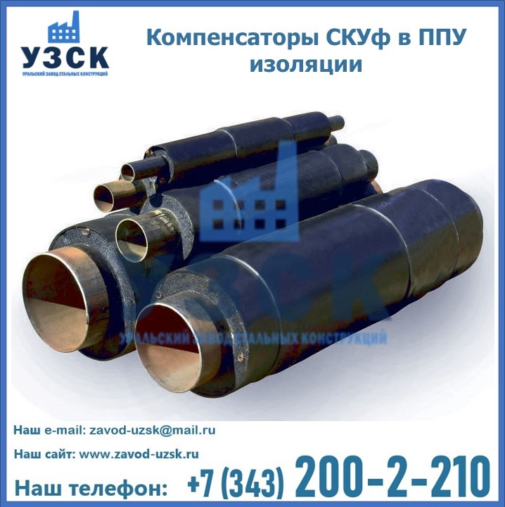 Если трубы для прокладки усилены теплоизоляцией ППУ, то на них допустимо устанавливать только cильфонный компенсатор СКУф в ППУ с такими же размерами теплоизоляционного слоя. На данный момент, такие устройства считаются одними из наиболее надежных, эффективных и долговечных элементов, способных обеспечить бесперебойную работу трубопроводов. На заводе «УЗСК» вы можете купить СКУф ППУ и другие компенсаторы по приемлемой цене, от надежных производителей. УЗСК осуществляет поставки сильфонных компенсаторов СКУ в ППУ любых типоразмеров. Наше предприятие поставляет и производит оборудование, имеющее длительную гарантию и большой эксплуатационный ресурс. Если требуется изготовить нестандартное изделие, то такой вариант выполнения заказа тоже предусмотрен, так как предприятие имеет собственные производственные площади и надежных поставщиков. На все оборудование имеются чертежи и прочая техническая документация. Чтобы заказать сильфонный узел СКУф в ППУ изоляции в Костанае необходимо направить запрос через форму онлайн-заказа на сайте или связаться с нашими специалистами по телефонам, указанным в разделе «КОНТАКТЫ .